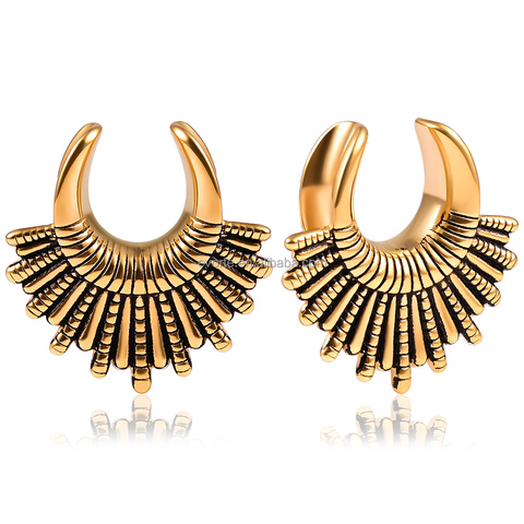 Evorte-pendientes Vintage de oro de 18K y 14K para mujer, Piercing para la oreja, Piercing Punk, expansor de oreja, calibre de túnel, joyería corporal